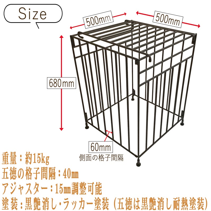 五徳の鉄筋間隔は40mm間隔なので小さめのやかん等でも安定して載せれます。